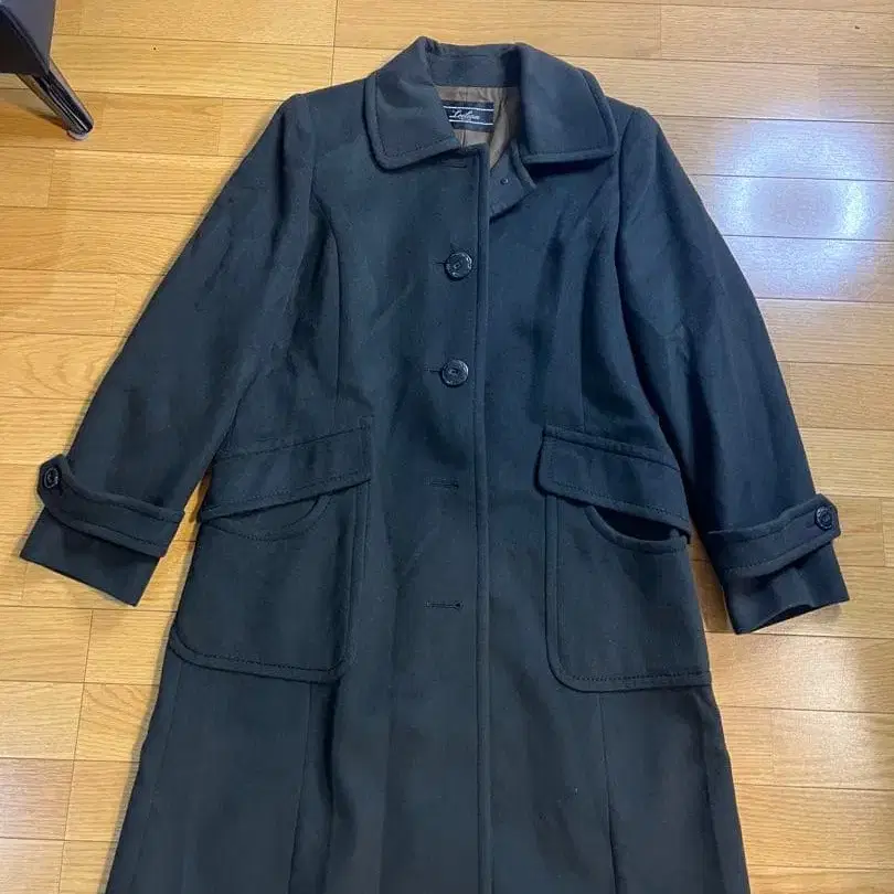 심플한 디자인의 블랙 롱 코트, 단추식과 포켓 부착으로 실용적입니다. 12/24 - 브랜드: Leilian - 색상: 블랙 - 스타일: 롱 코트 - 특징: 단추식, 포켓 부착 - 소재: 울 혼방 (추정) 방문해 주셔서 감사합니다.