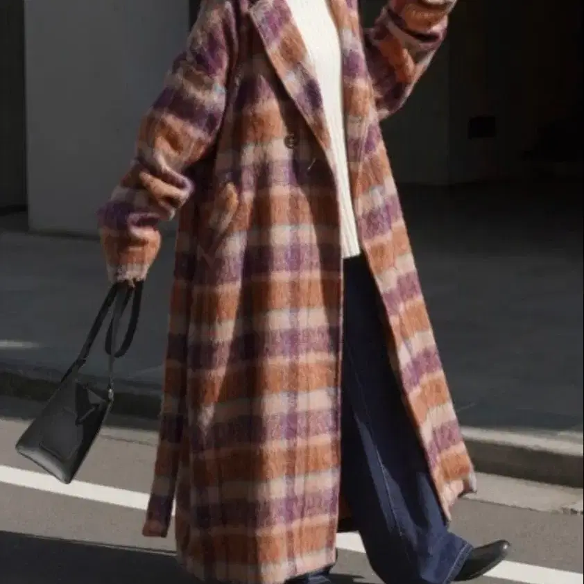 탄탄하고 두꺼운 원단에, 드레이프성이 있는 약간의 샤기 소재가 더해져 매우 세련된 느낌의 코트입니다.