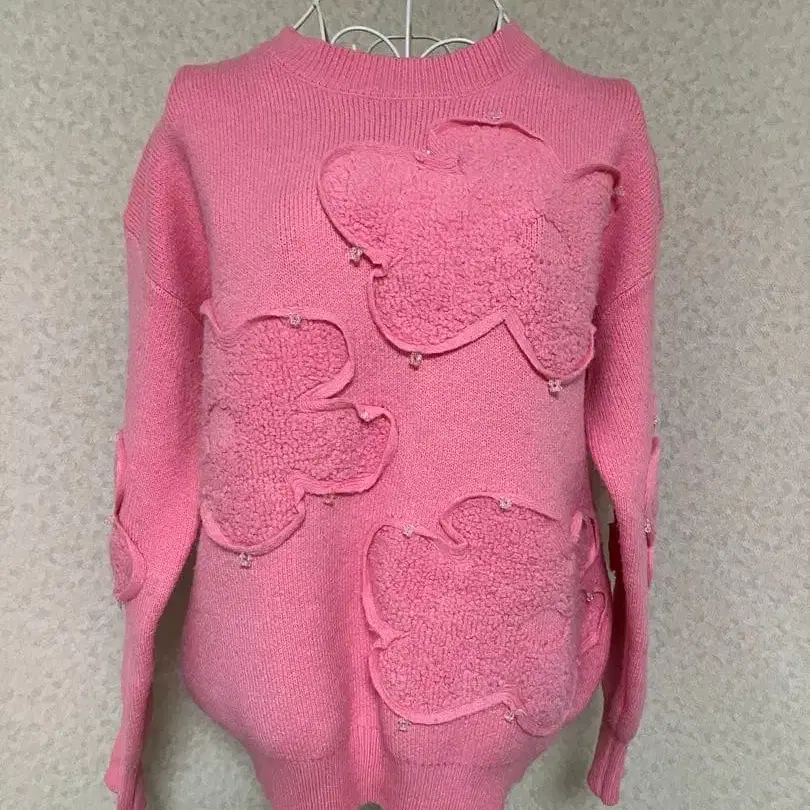 자동 번역되었어요. 원문보기꽃 모티브가 특징인 핑크색 긴팔 니트.