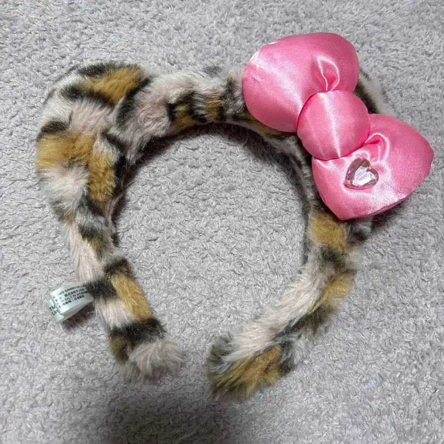 키티 레오파드 무늬 핑크 리본 머리띠