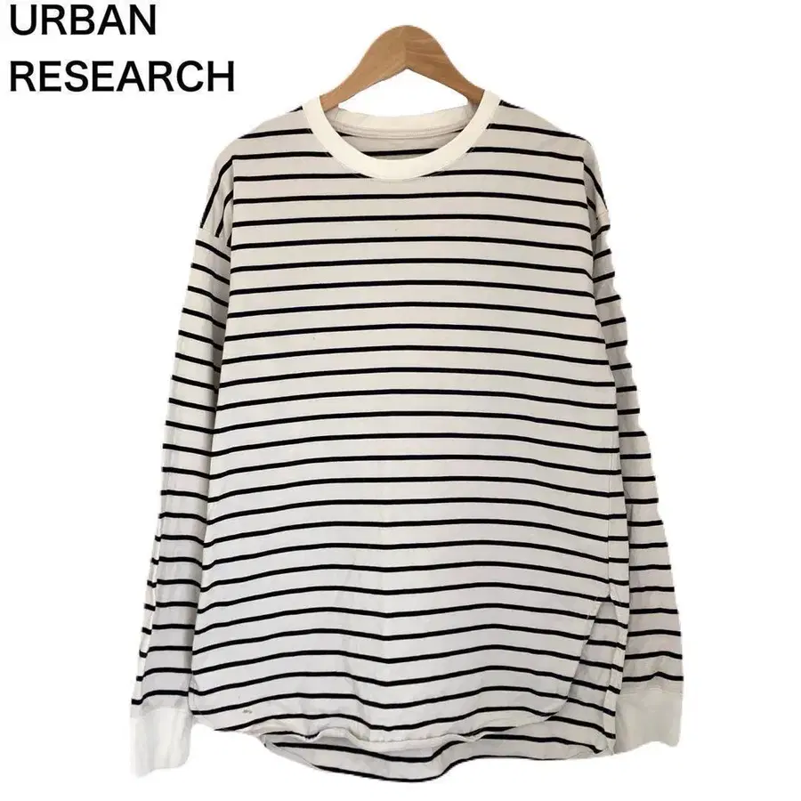 어반 리서치 T셔츠 보더 긴팔 코튼 화이트 여성용 둥근넥