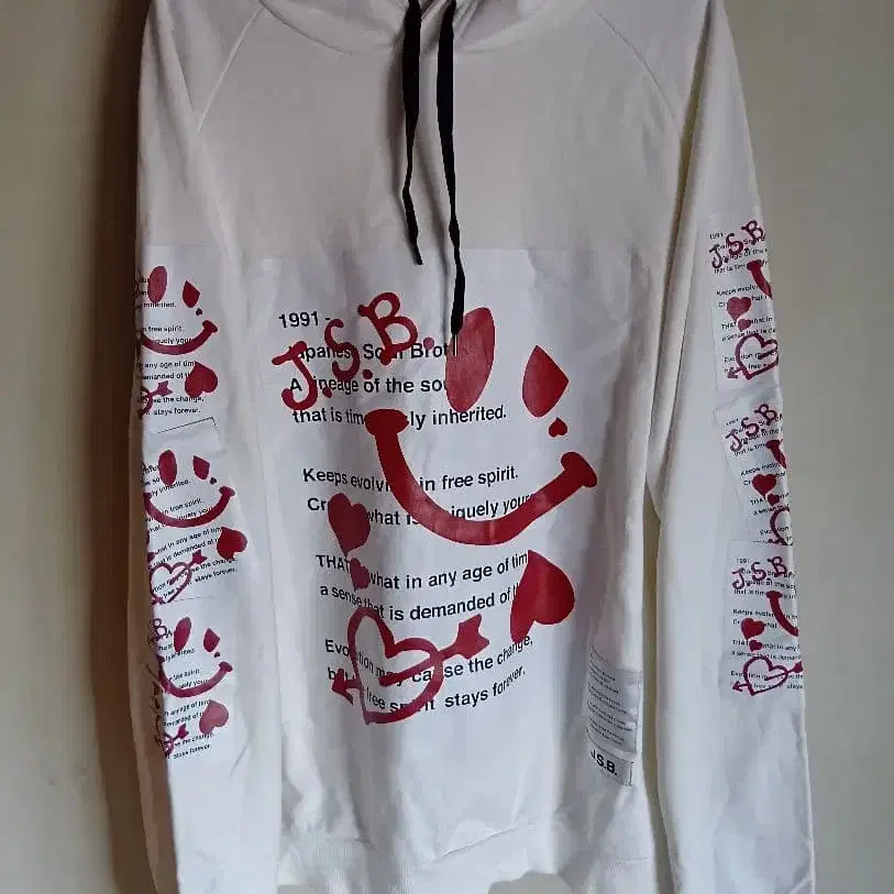 화이트 J.S.B. 후드티, 그래픽 프린트 디자인. - 브랜드: J.S.B. - 색상: 화이트 - 디자인: 그래픽 프린트 - 소재: 코튼 혼방 1회 착용했습니다. 깔끔합니다. JSB를 평상복으로 입어주시면 좋겠습니다. 중고품이므로 정신적으로 신경 쓰이시는 분은 삼가해 주십시오! 잘 부탁드립니다m(_ _)m