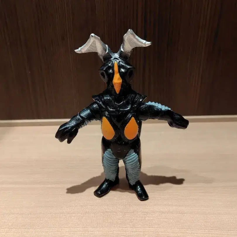 JAPAN 울트라맨 시리즈의 특징적인 괴수 피규어, 뿔과 오렌지색 복부가 눈길을 끄는 디자인.