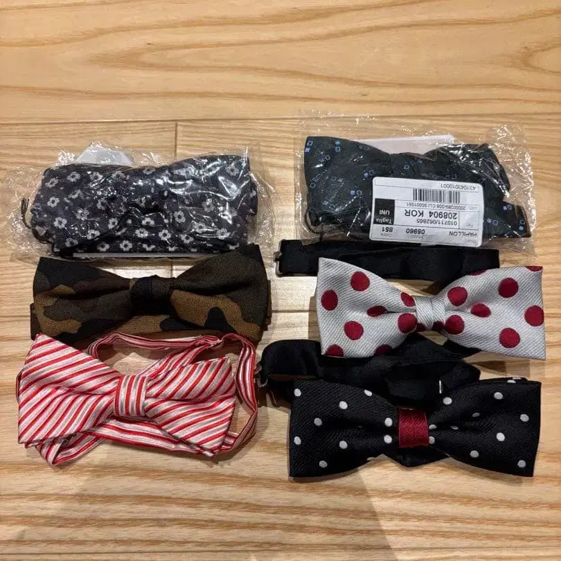 다양한 디자인의 나비 넥타이 세트, 카모플라쥬, 스트라이프, 도트 무늬 포함. 방문해 주셔서 감사합니다.