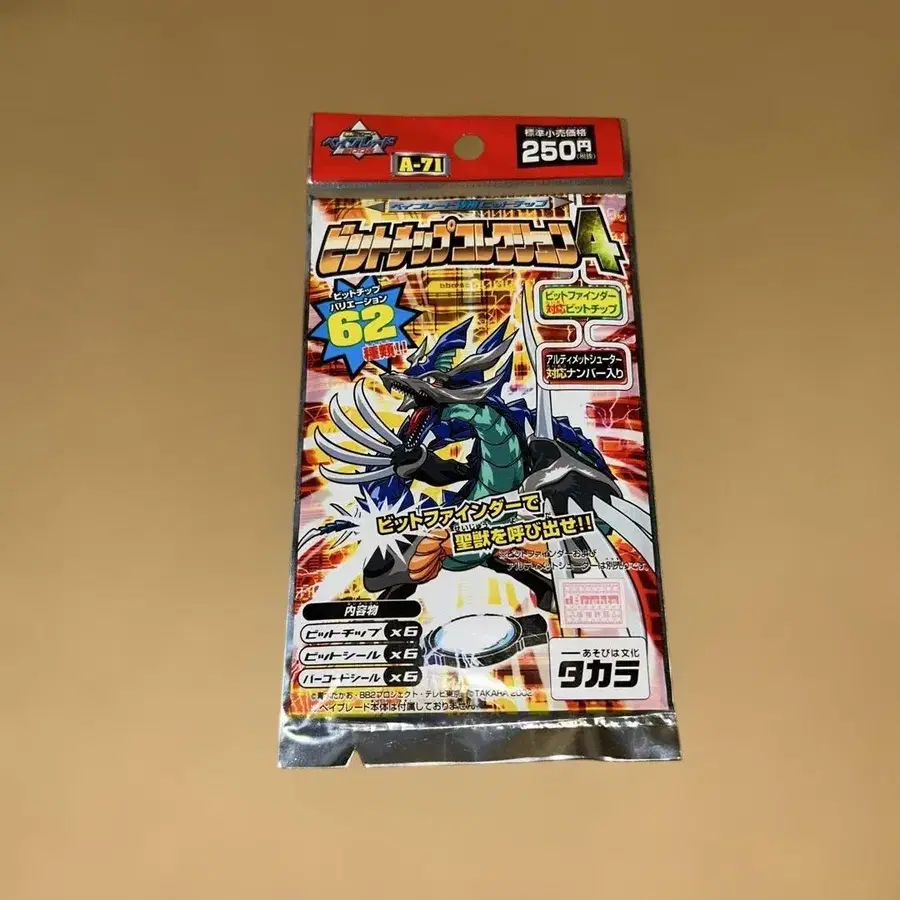 타카라에서 출시되었던 폭전슛 베이블레이드 시리즈의 비트칩 컬렉션 4 미개봉품입니다. 재고는 5개이며, 2개째부터는 100엔 할인하여 추가 가능합니다. 미개봉품이지만, 중고품으로 이해해 주시는 분만 구매 부탁드립니다.