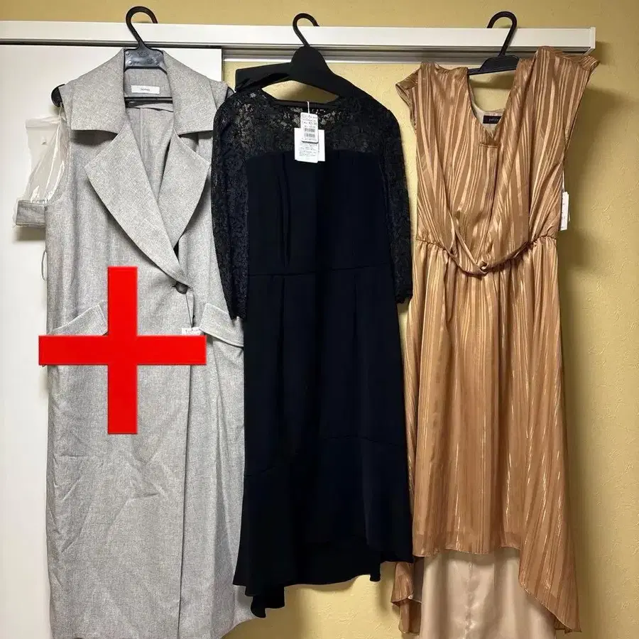 다양한 스타일의 드레스가 갖춰진 세트. 야마다야 - 색상: 그레이 - 스타일: 롱 드레스 - 브랜드명: TEA050402 - 가격: 33,000엔 - 색상: 블랙 - 스타일: 레이스 드레스 - 브랜드명: C0P0888600 - 가격: 25,000엔 - 색상: 골드 - 스타일: 쉬폰 드레스 찾아주셔서 감사합니다. 사이즈 - FREE SIZE