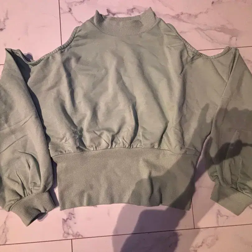 오프숄더 민트 그린 맨투맨