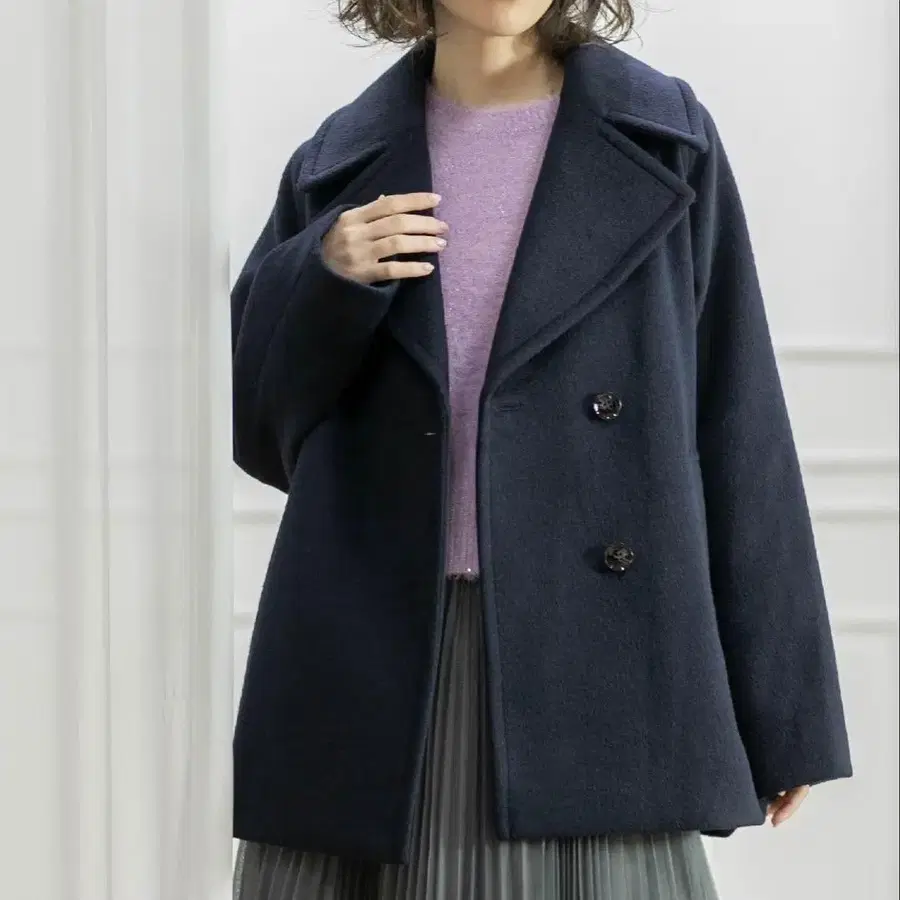 힙을 덮는 미들 기장과 감싸는 듯한 코쿤 실루엣이 포인트입니다.