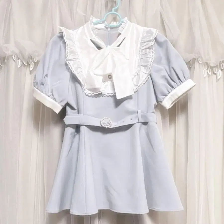 Honey Cinnamon 셋업 스카이블루 하의 포함입니다! 양산형 지뢰계 유니폼 목 부분과 리본에 메이크업이 묻어 있습니다. 클리닝이나 세탁으로 지워질지는 모르겠습니다. 사이즈 - FREE SIZE 마즈 MARS