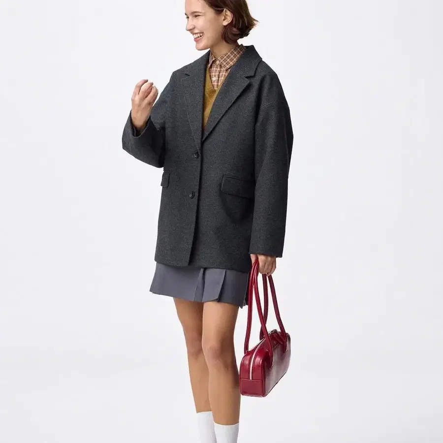 지유 코지 멜톤 하프 코트 다크 그레이 L 사이즈 미사용 새상품