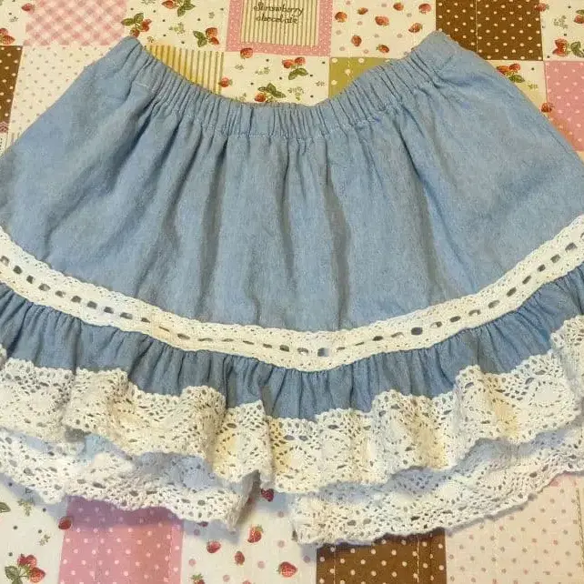 2가지 색상의 탕가리 원단으로, 레이스가 듬뿍 들어간 귀여운 치마바지입니다( * ꒳ *) 안감도 있습니다.