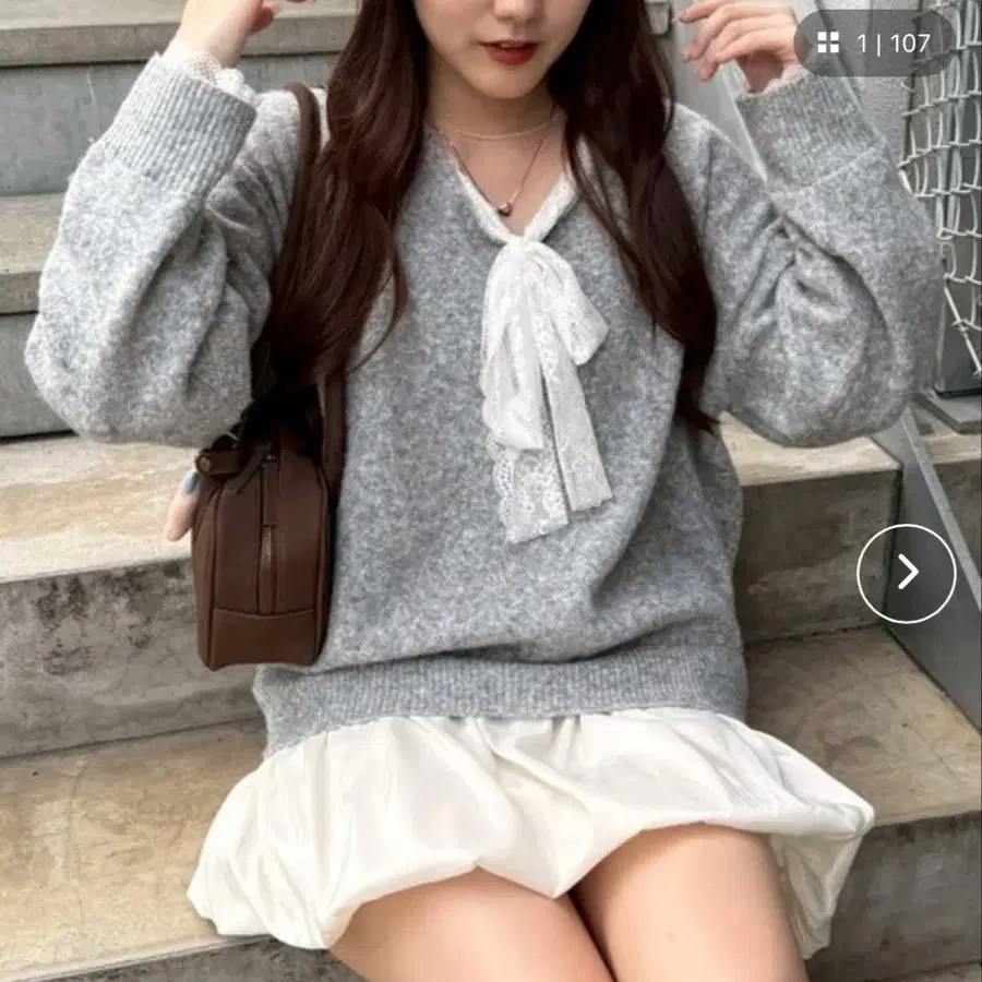 continuer de NICE CLAUP [ Ribbon Collection ] 레이스 밑단 벌룬 미니 원피스 그레이 2025 Autumn and Winter Ribbon Collection 12월에 ZOZOTOWN에서 구매했습니다. 하루 착용했기 때문에 비교적 깨끗한 상태입니다.