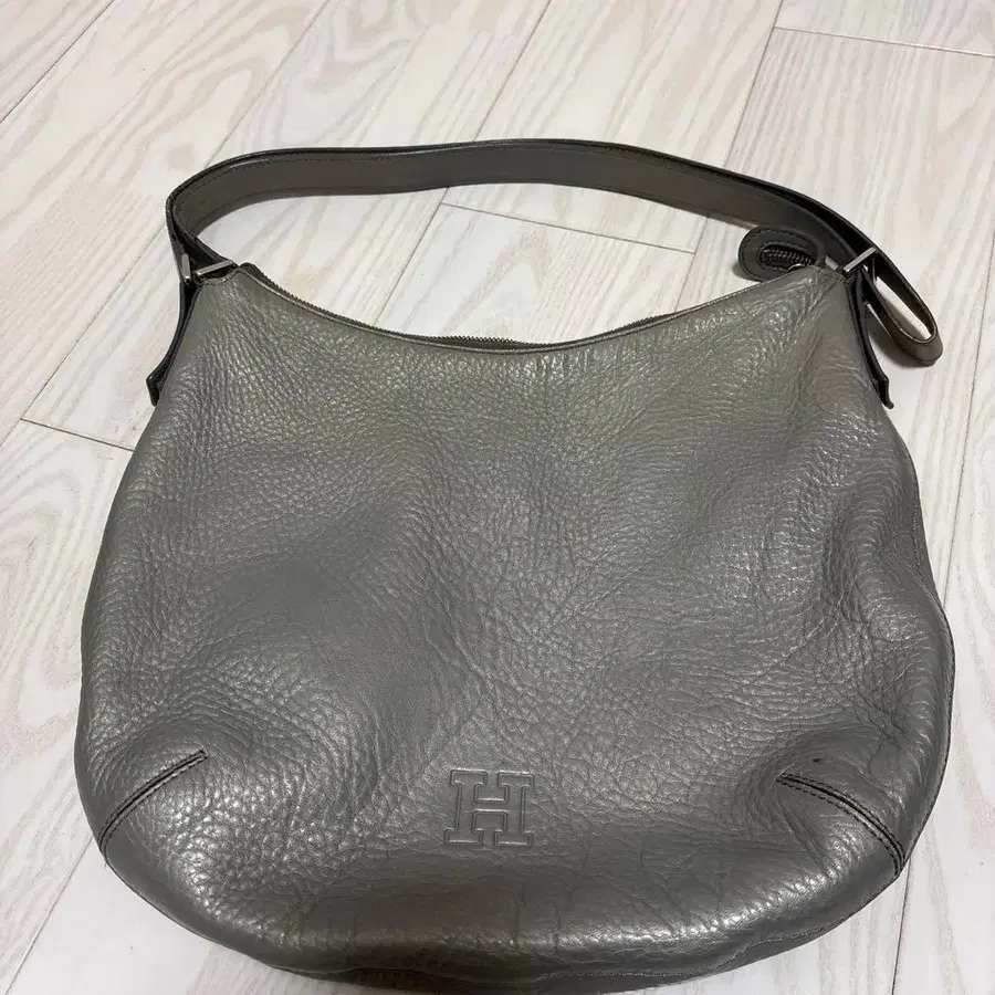 히로후의 부드러운 가죽 소재의 그레이 숄더백. 안쪽에 포켓이 두 종류 있어 사용하기 편리합니다. 외부에 검은 점 얼룩이 있습니다. (사진을 확인해 주세요) - 색상: 그레이 - 소재: 가죽 - 디자인: H 로고 포함 방문해 주셔서 감사합니다.