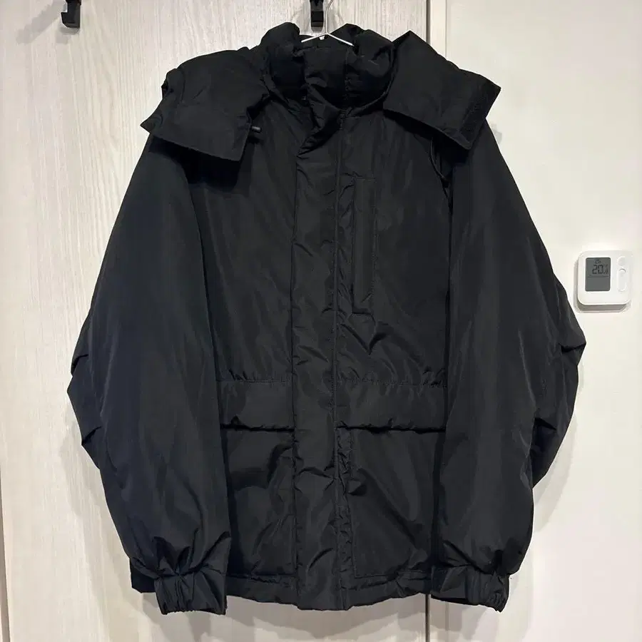 • 블랙 다운 자켓 후드 부착