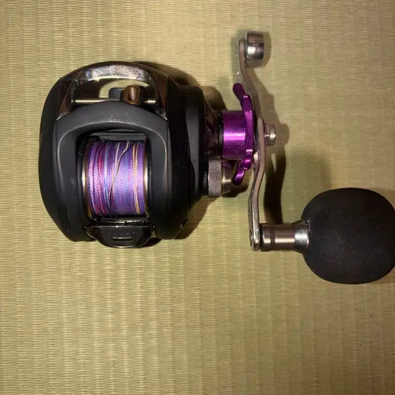 블랙과 보라색 디자인의 베이트릴, 러버 그립 핸들 포함. - 색상: 블랙과 보라색 디자인 - 핸들: 러버 그립 핸들 - 스풀: 컬러풀한 라인이 감긴 스풀 방문해 주셔서 감사합니다. 상태는 이미지로 확인해 주세요. 중고품이므로 이해해 주시면 잘 부탁드립니다.
