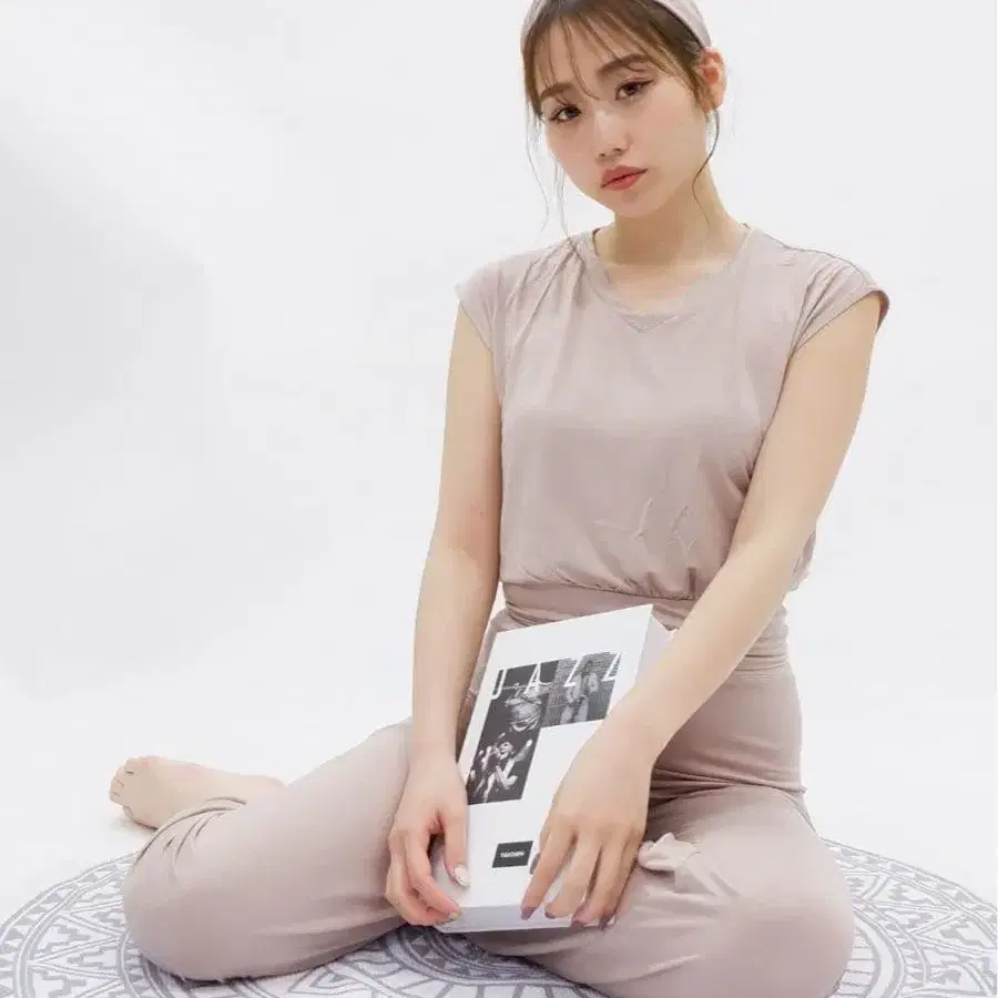 부드러운 베이지 색상의 캐주얼 룸웨어, 백 오픈 디자인에 리본이 달려 있습니다.
