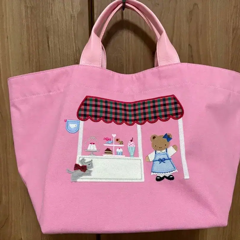 외출 시 1회 사용했습니다. 별도 브랜드의 핑크색 핸들 커버를 함께 드립니다 (사진 8번째). 귀여운 곰이 수놓아진 핑크색 토트백. - 브랜드: 파미리아 - 색상: 핑크 - 소재: 면 100% / 합성 피혁 - 디자인: 자수 디자인 (곰과 잡화) - 부속품: 밴드 포함 방문해 주셔서 감사합니다.
