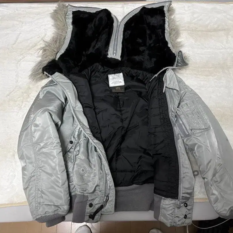 PRACT 그레이 N3-B 플라이트 자켓 퍼 포함