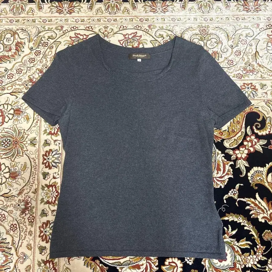 폴 스튜어트의 다크 그레이 반팔 니트입니다. 사이즈는 6으로 표기되어 있으며, 9호 사이즈 정도 됩니다. 목 부분의 디자인이 귀엽습니다.
