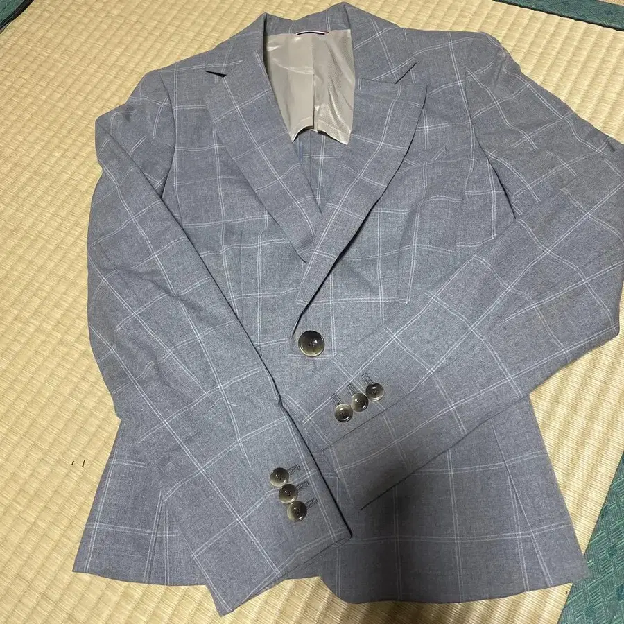 라이트 블루 체크 무늬 더블 브레스트 자켓 9호 기준