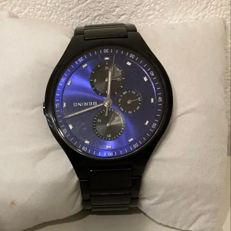 파란색 다이얼과 스테인리스 스틸 쿼츠 손목시계, 크로노그래프 기능 포함