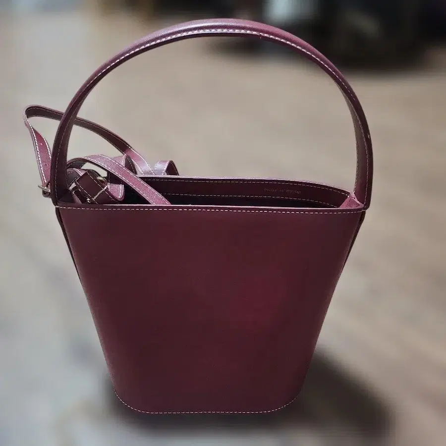 버건디 색상의 가죽 버킷백 스타일 숄더백입니다. 숄더 스트랩이 있어 사용하기 편리합니다. - 색상: 버건디 - 소재: 인조 가죽 - 디자인: 버킷백 스타일 - 핸들: 숄더 스트랩 포함 - 바닥면: 타원형 - 안쪽: 심플한 디자인 18 x 25 x 15 자택 보관 제품이므로 신경 쓰이는 분은 구매를 자제해주세요.