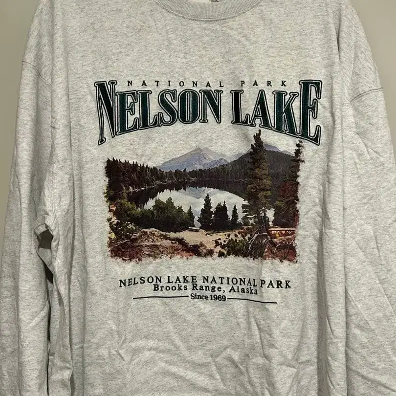 넬슨 레이크 국립공원 풍경이 프린트된 그레이 색상의 긴팔 티셔츠. - 디자인: 넬슨 레이크 풍경 프린트 - 소재: 그레이 색상 긴팔 티셔츠 - 특징: 내셔널 파크 로고 포함 - 지역: 알래스카주 브룩스 레인지 - 설립 연도: 1969년 방문해 주셔서 감사합니다. 사이즈 - M