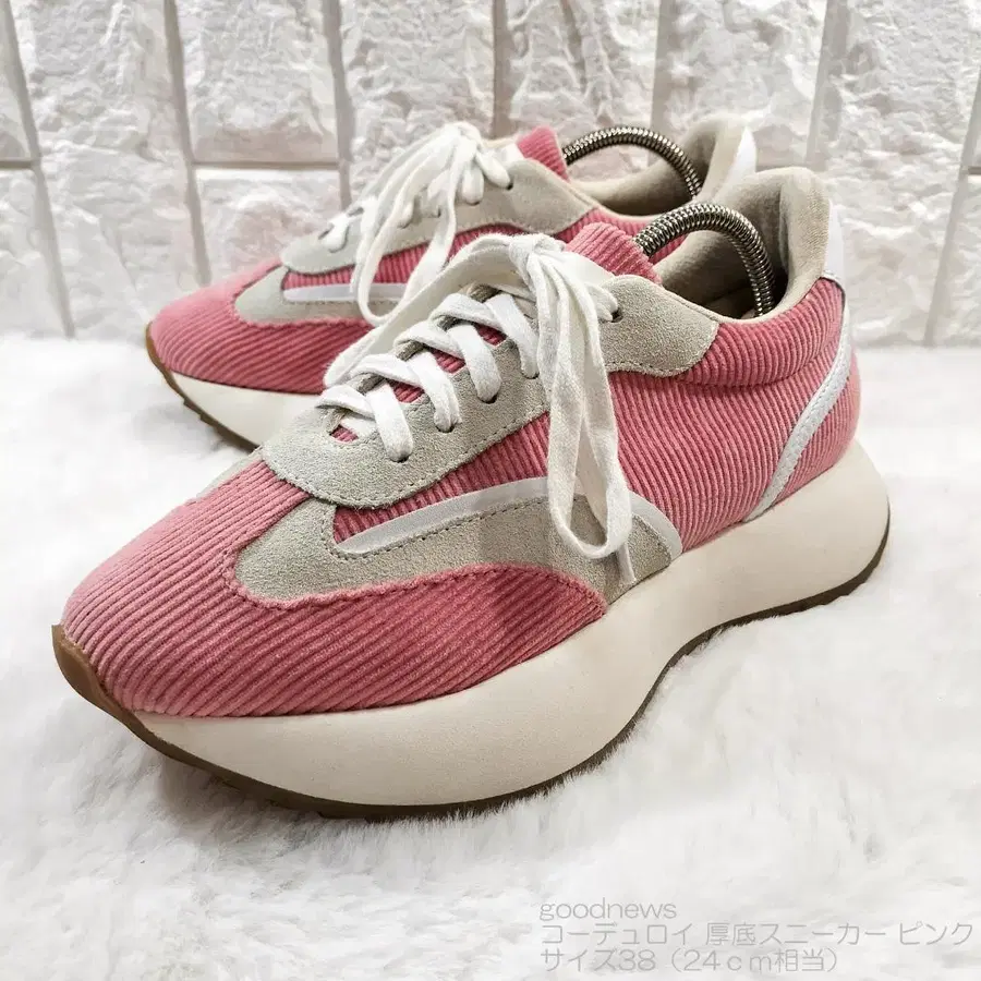 goodnews의 코듀로이 소재를 사용한 통굽 스니커즈입니다.