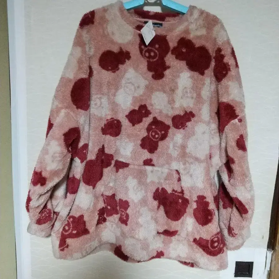 새상품! 드럭 스토어즈 올 패턴 복슬복슬 서 있는 돼지 플리스 F 핑크