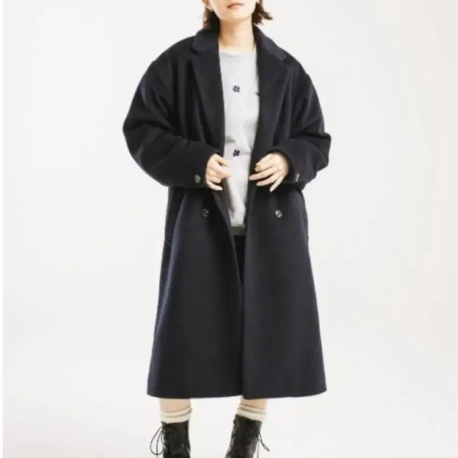 [ 세일 중 ] 여성용 더블 버튼 피 코트 네이비