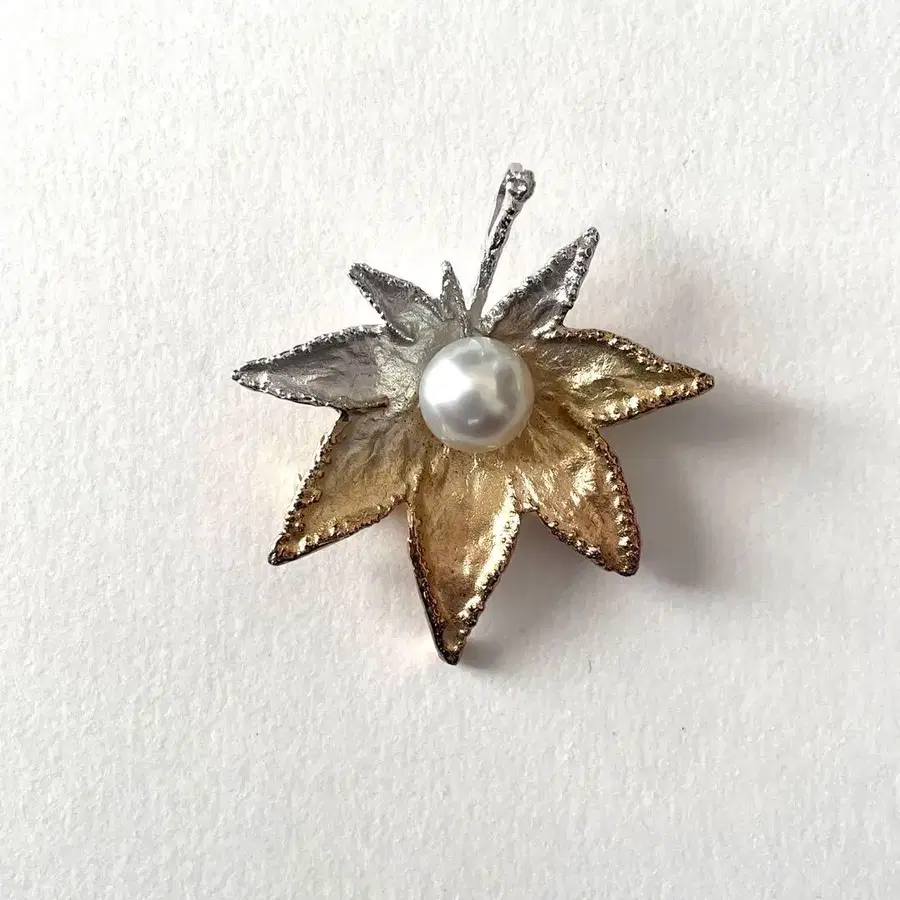 은행나무 잎에 진주를 더한 실버 브로치입니다. 나노 도금으로 아름다운 그라데이션을 표현하여 골드와 실버의 부드러운 대비를 연출한 주얼리입니다. 사진을 자세히 보시고 중고품으로 이해하신 후 검토 부탁드립니다. 무게 약 10.5g 사이즈 약 4.6 x 4.3cm 진주 약 10.5mm 색상 - 실버, 골드 재질 - SILVER950 부속품 - 부속물 없음 흠집, 변색 등 - 없음