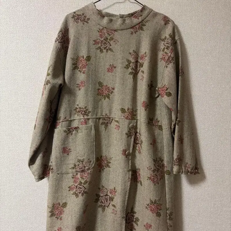 꽃무늬 디자인의 긴팔 원피스, 앞면에 포켓 부착.