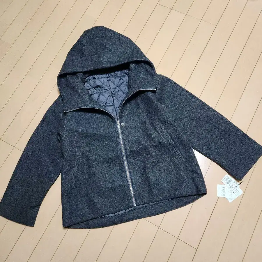 후드 부착 그레이 울 코트 새상품