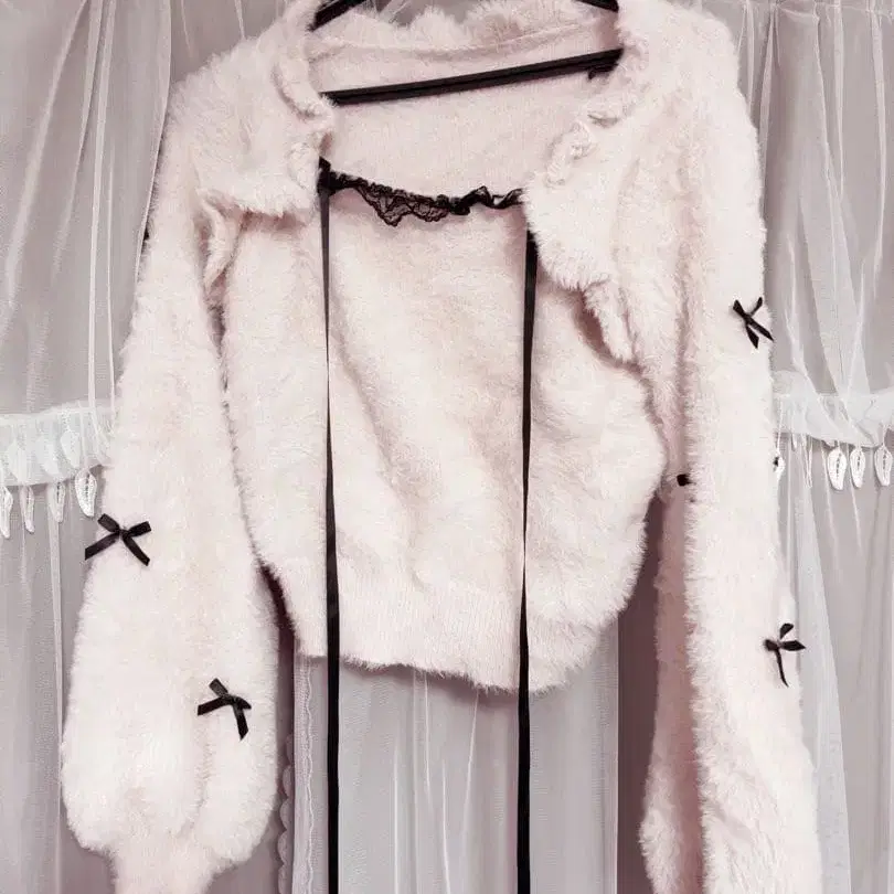 택 포함 새상품! 플러프 페더 숏 슬리브 니트 가디건