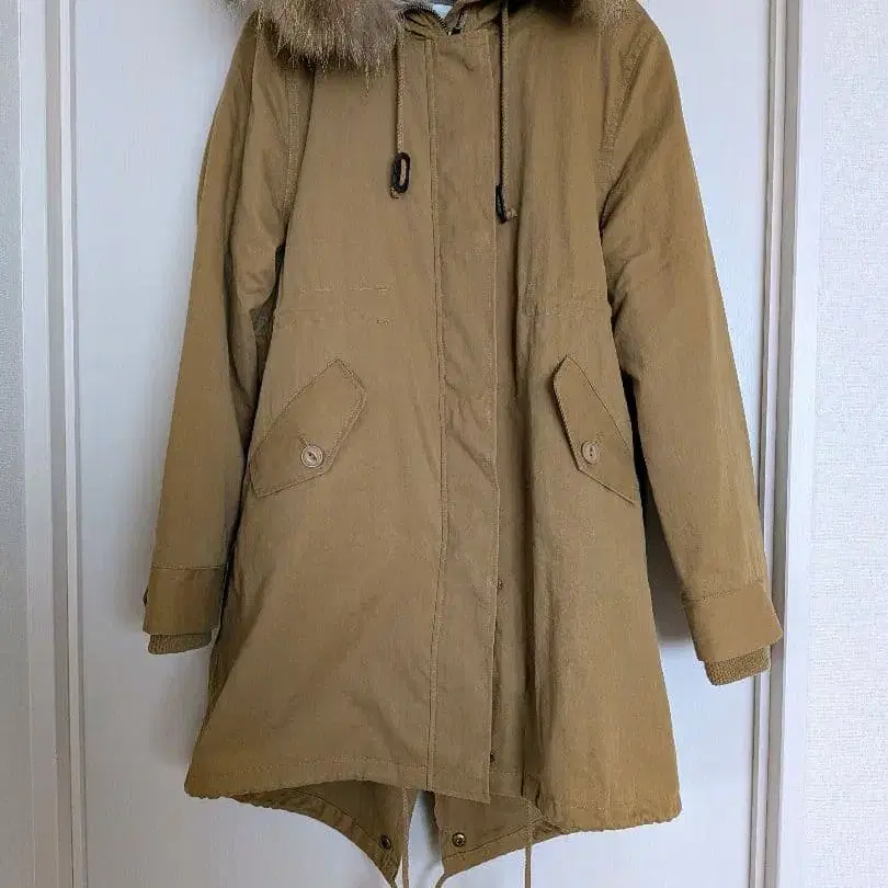 아즈노아즈 베이지 색상의 퍼가 달린 모즈 코트, 탈부착 가능한 보아 안감으로 따뜻합니다. - 색상: 카키 - 후드: 퍼 포함, 퍼 탈부착 가능 - 안감 소재: 보아 탈부착 가능 - 포켓: 앞면 2개 - 디자인: 롱 기장 후면부 길이 약 80cm 안쪽의 보아와 퍼는 탈부착 가능하여 봄, 가을에도 착용할 수 있습니다. 몇 번 착용하지 않았지만 계속 보관만 했습니다. 중고품에 이해가 있는 분은 잘 부탁드립니다.
