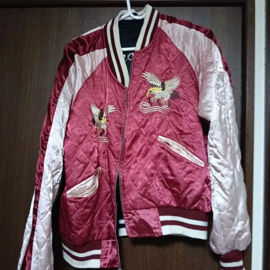 빨간색과 핑크색 스카잔, 독수리 자수 포함.