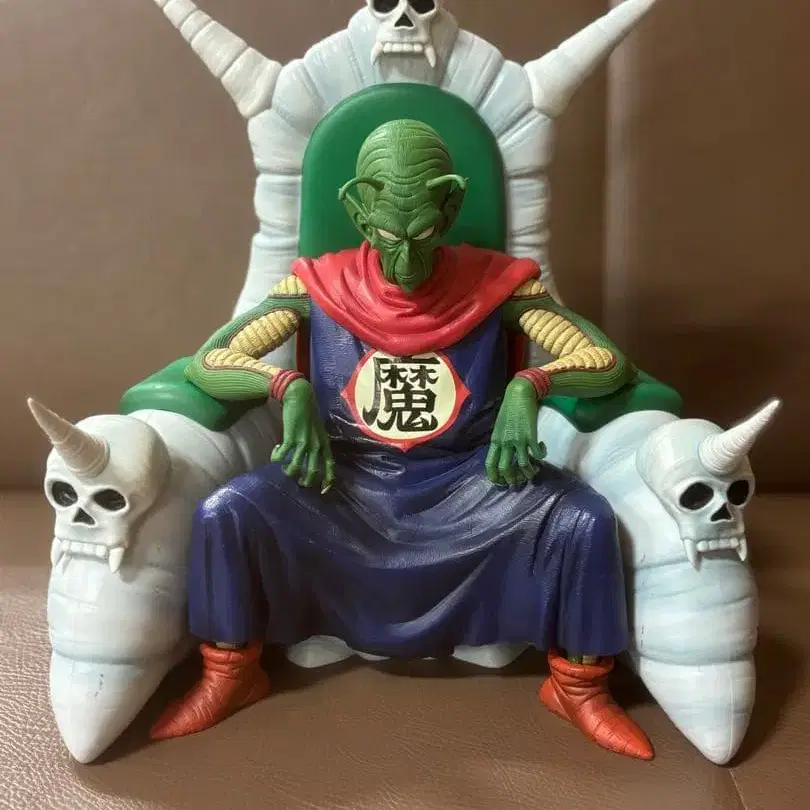 해골 장식 의자에 앉아 있는 피콜로 대마왕 피규어입니다. 유리 케이스에 장식해 두었습니다. 눈에 띄는 흠집은 보이지 않지만, 의자에 의류 이염이 약간 있습니다. - 캐릭터: 피콜로 대마왕 - 디자인: 의자에 앉은 자세 - 특징: 해골 장식이 된 의자 - 의상: 빨간색 망토와 파란색 의상 - 상태: 의자에 약간의 이염 있음 - 의자 색상: 화이트와 그린 - 의자 디자인: 뿔이 있는 해골 장식 상태는 이미지로 확인해 주세요. 이미지에 있는 것이 전부입니다. 방문해 주셔서 감사합니다.