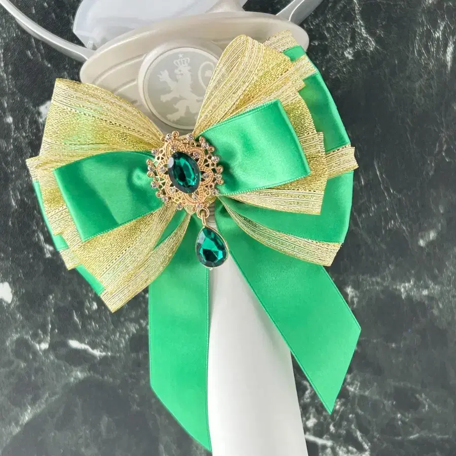 광택이 있는 그린 새틴 리본