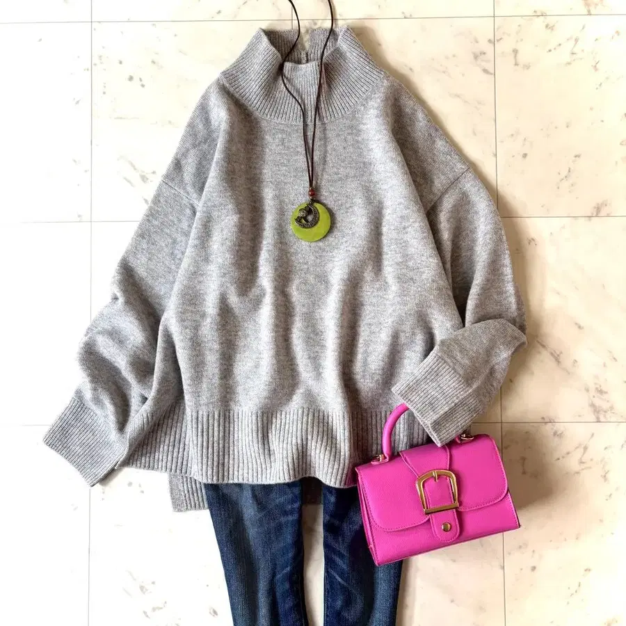 • 그레이 하이넥 니트