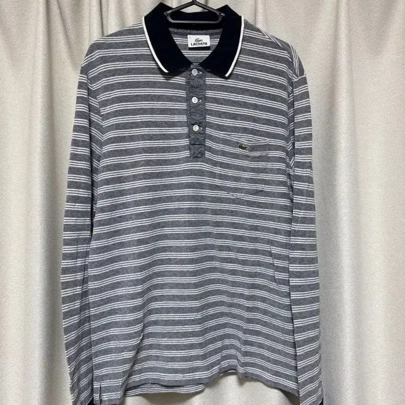 LACOSTE polo shirt 보더 긴팔 피케 셔츠 원 포인트 레귤러 핏