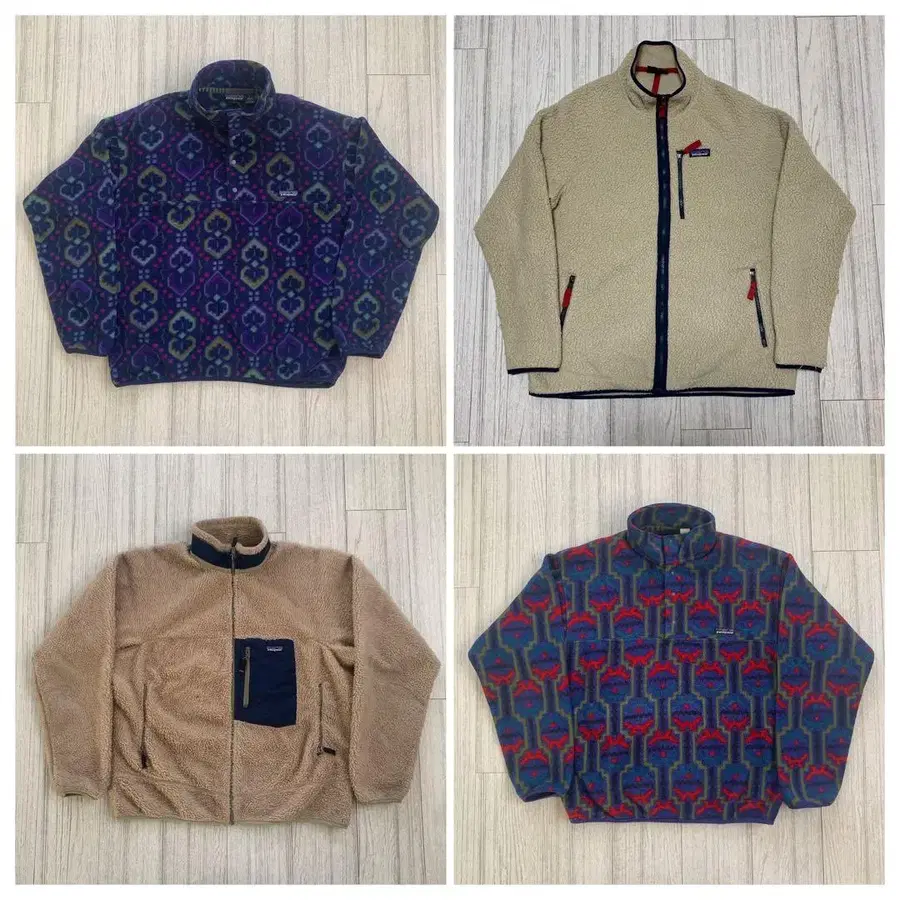 각각 M~XL 사이즈. 파타고니아의 테웰치, 태피스트리 스냅t, 레트로x, 레트로 파일 자켓