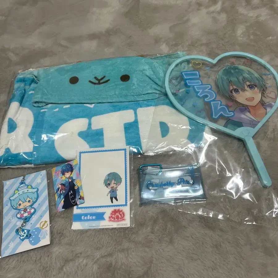 스트로베리 프린스 코론 군의 굿즈 6종 세트입니다! 내용 부채 후드 부착 타월 러버 스트랩 카드 아크릴 파우치 아크릴 엽서