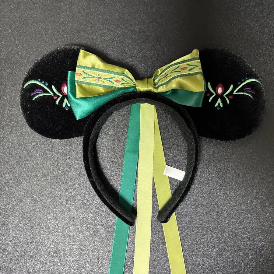 미키 귀 디자인의 머리띠, 리본 포함이며 자수가 놓여 있습니다.