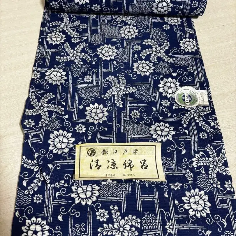 신 에도 염색 면 비단 옷감입니다. 가장자리 등에 약간 얼룩이 있습니다. 옷감 폭 36cm