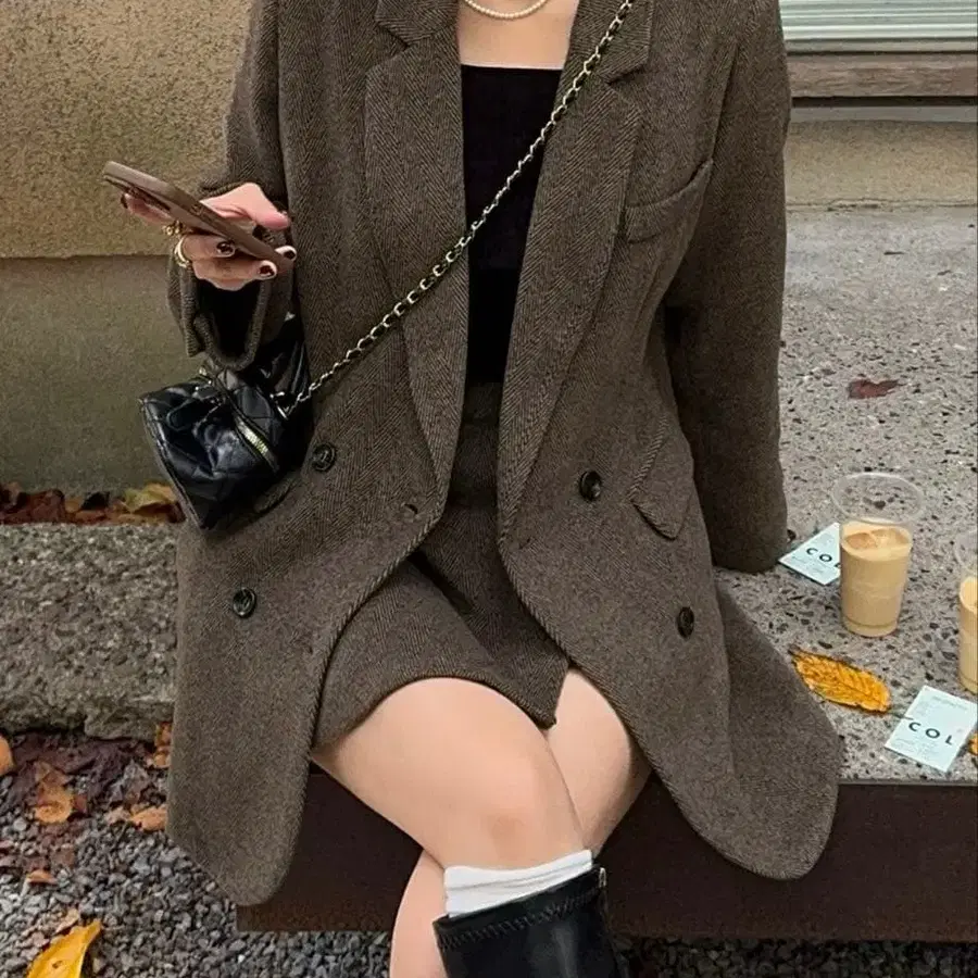 자켓 + 슬릿 미니 스커트