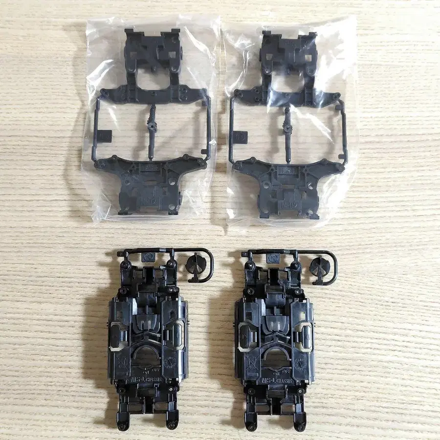 미니 사륜구동 MS 섀시 (폴리카 ABS 강화 타입) 2세트 미사용 새상품 센터 섀시는 경량 센터 섀시이며, 소재는 전후 유닛 모두 폴리카 ABS 강화 수지제입니다. A 부품은 없습니다. 에어캡으로 포장하여 발송하지만, 러너에서 부품이 떨어질 가능성이 있습니다.