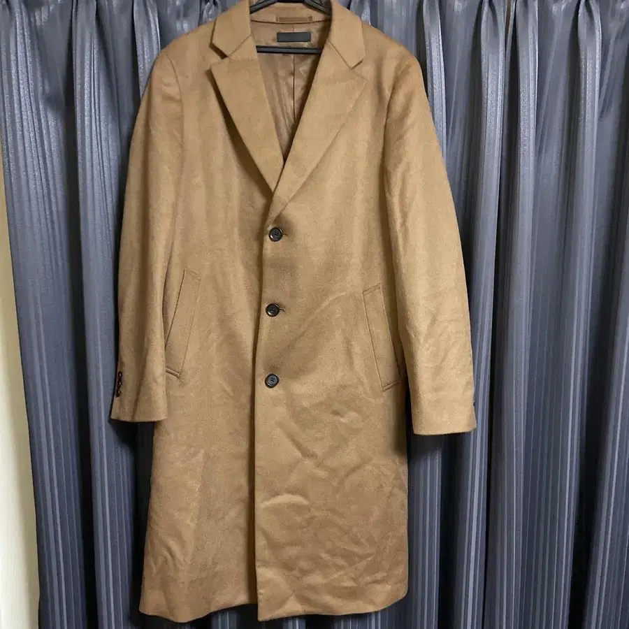 유니클로 울 캐시미어 체스터 코트 베이지 브라운 사이즈 - L 2023년에 구매하여 1회 착용한 제품입니다.