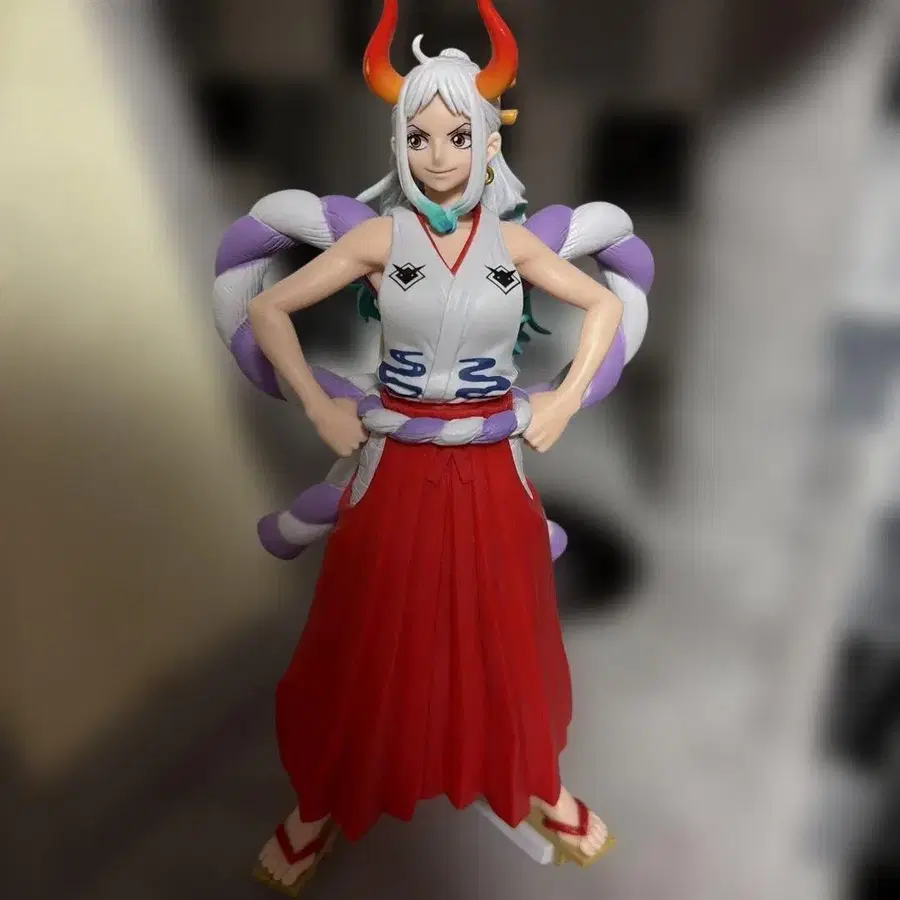 원피스의 야마토 피규어. - 캐릭터명: 원피스의 캐릭터 - 의상 색상: 빨간색과 화이트 - 머리 색상: 화이트 - 특징적인 장식: 뿔 모양의 장식 - 포즈: 양손을 허리에 댄 포즈 방문해 주셔서 감사합니다.