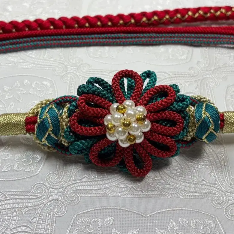 b-223 순수 실크 허리띠 후리소데 성인식 장식끈 오다마키 펄 장식