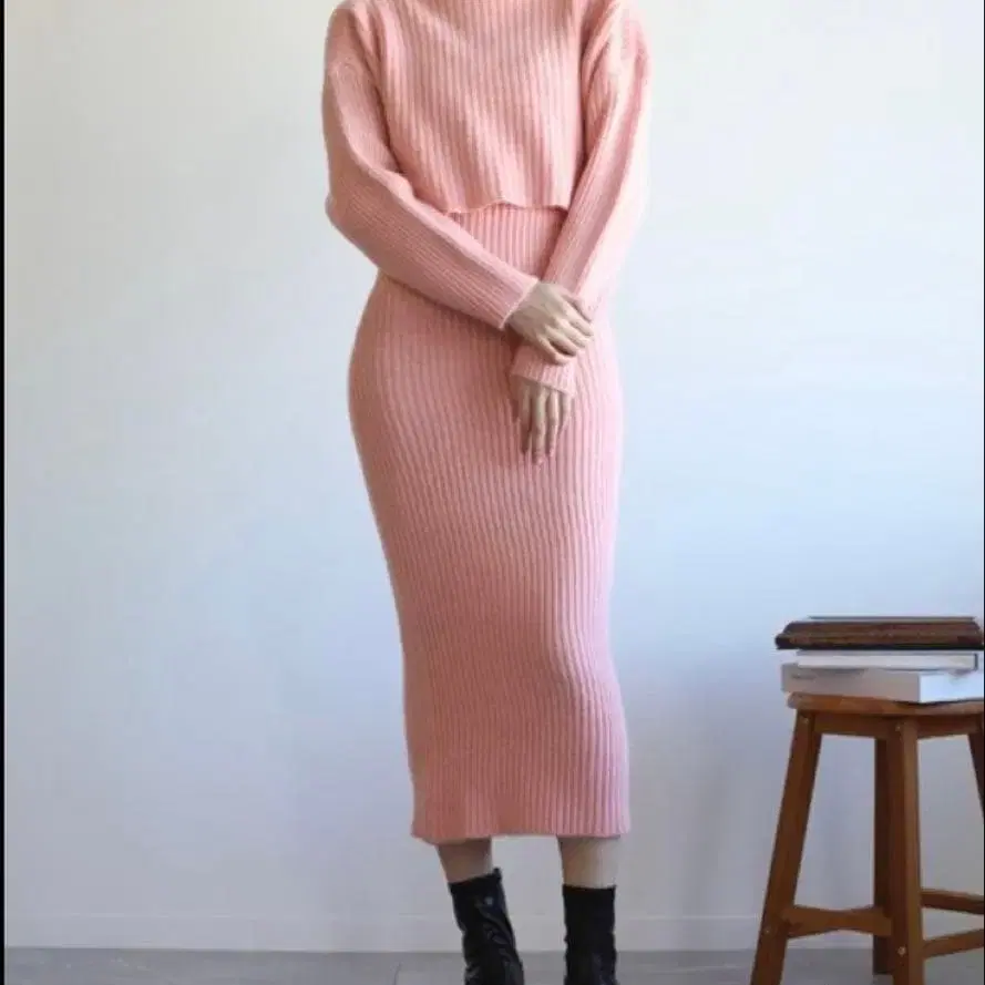 Jasmine Grandiflorum ] 셋업 핑크 Jasmine 터틀넥 상의 + 니트 원피스 셋업 Jasmine Grandiflorum, 재스민 그란디 플로라 Jasmine Grandiflorum, 재스민 그란디 플로라 [ 실측치수 ] 가슴 너비 터틀넥: 56, 가슴 너비 원피스: 37 총길이 터틀넥: 39.5, 총길이 원피스: 116 소매 터틀넥: 76
